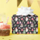 Christmas Gnome for Holidays Pattern Black Wrapping Paper. Features a silver background and pattern of gnomes, presents, holly, candy canes, Christmas trees, and Santa's bag. Personalise this tiled image. Edit it for more customisation.