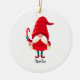 Christmas Gnome Holding A Candy Cane Ceramic Ornament
