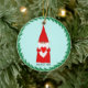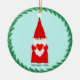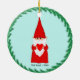 Christmas Gnome Holding a Heart on Light Blue Ceramic Ornament