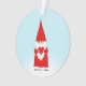 Christmas Gnome Holding a Heart on Light Blue Ornament