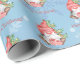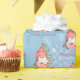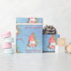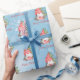 Christmas Gnome with Presents Tree Personalised Gift Wrapping Supplies. This fun watercolor Scandinavian gnome holding a present and sitting in front of a Christmas tree, is a festive way to wrap your holiday presents this year. The text can be personalised and the design is on a blue snowflake background.