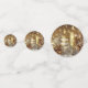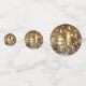 A beautiful photo of gold and white candles burning with acorns and ornaments, gifts and snow