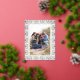 This design features a Christmas holiday photo gold frame, festive picture elegant simple, simple minimalist stylish overlay, merry Christmas winter design, stylish snowflake scrolls, Merry Christmas trendy typography, memorable traditional luxury Christmas, elegant gold foil filigree,2 photo two postcard template, family photo postcard