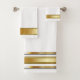 Decorate your bathroom for the Christmas holiday with this custom designed bath towel set. Gold metallic accents on white make an elegant statement for any festive decor.