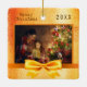 Christmas gold photo family ceramic ornament