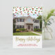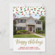 Christmas customisable realtor photo card with gold, green and red glitter effect confetti pattern. Please note glitter is photographic effect only. Add your photo and custom text to this card to create a unique Christmas greeting this holiday season for your clients.