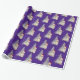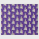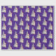 Cute golden retriever puppy with Santa hat and white holiday tree in snowflakes on a purple background.