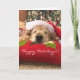 Send special holiday greetings this season with this cute Christmas card! Design features a photograph of a golden retriever dog who is asleep on a pillow under a tree and wearing a red Santa hat. Customisable front text reads, "Happy Holidays!" while the inside text states, "Wishing you the best, this Christmas season & always."