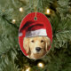 A Cute Golden Retriever wearing a Santa Claus Hat for Christmas