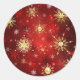 Christmas Golden Snowflakes on Red Background Classic Round Sticker