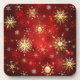 Christmas Golden Snowflakes on Red Background Coaster