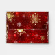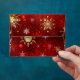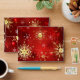 Red Christmas background with gold and white jewellery snowflakes. Golden snowflakes.