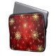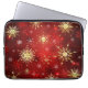 Christmas Golden Snowflakes on Red Background Laptop Sleeve