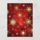 Red Christmas background with gold and white jewellery snowflakes. Golden snowflakes.