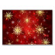 Red Christmas background with gold and white jewellery snowflakes. Golden snowflakes.