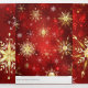 Red Christmas background with gold and white jewellery snowflakes. Golden snowflakes.