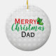 This awesome ceramic ornament has a golf ball background. The front has an elf girl wearing a Santa hat and she is riding a red golf cart that is all decked out for Christmas with tons of holly on top. She is on her way to the party at the clubhouse and she is bearing gifts. The gift wrapped box has golf balls on it with snowman faces. So stinkin' adorable! The back has text that says Merry Christmas Dad with a sprig of holly. You can personalise all the text to change the sentiment, name or add the year. To see more of my digital art please go to: www.IrrationalArts.etsy.com