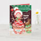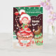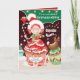 A sweet Christmas card for Granddaughter. The cupcake princess Marcy Pam is dressed for the holiday season. Wearing a Santa hat and a green scarf and carrying a candy cane, she sits on top of her cupcake happily blowing kisses. Beside her is a smiling chocolate reindeer cupcake, and perched on top of her candy cane is a little robin.