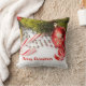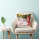 Beautiful Christmas decoration with a green pine branch, red lanterns and silver pearls over white background. Merry Christmas- handwritten. Customisable throw pillow template