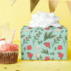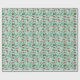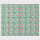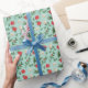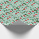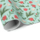 Light green background with darker green florals and red and white Christmas flowers pattern for gift wrapping.