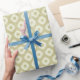 Christmas Green Taupe Print Fabric Wrapping Paper