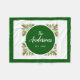 This Christmas fleece blanket offers a watercolor graphic of pine branches accented with sprigs of red berries. The graphic appears around a dark green circle which features handwritten style text for personalising.