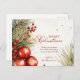 This Christmas Greenery And Ornaments Postcard features elegant Christmas greenery in watercolor technique, bringing a touch of nature to the card, while the inscription "Merry Christmas" is beautifully written in decorative calligraphy, adding a subtle hint of holiday glamour.