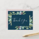 This Christmas greenery and berry navy thank you postcard is perfect for a December wedding. The winter holiday design features soft sage green watercolor eucalyptus and modern botanicals with sprigs of classic red holly berries. Personalise the back of the postcard with your names, your return address, and a thank you message. Alternatively, leave the thank you message template section blank to hand write a thoughtful personalised note on each card after they arrive. These cards can be used for a wedding, bridal shower, or any special event.