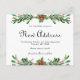 This Christmas greenery change of address announcement postcard features elegant "new address" calligraphy script and festive watercolor greenery leaves with red berries and pretty poinsettia flowers. This winter moving announcement postcard features editable text and background colours. If you are making a move to a new home during the Christmas season, this simple design is a festive way to share the news of the new address with your friends and family. The back of the moving announcement postcard includes a personalised message and return address, along with a watercolor holiday wreath and gold frame.