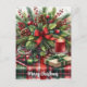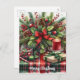 This premium Christmas post card features a lovely holiday greenery arrangement with tartan plaid and pinecone accents. The holiday card was . AI-generated artwork with design direction by Susang6.