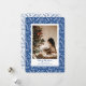 This cheerful and festive single photo holiday card features a hand drawn blue and white Christmas botanical pattern and space for a vertical photo.
