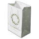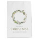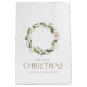 This elegant Christmas gift bag features a delicate watercolor wreath made of greenery, soft foliage, and subtle red berries. The minimalist design is complemented by a "Merry Christmas" greeting and a customisable family name, adding a personal touch to your holiday gifting. Perfect for holding presents, seasonal goodies, or festive treats, these bags bring a stylish and cosy element to your Christmas celebrations, making each gift feel extra special.