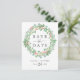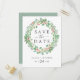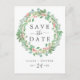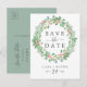This Christmas greenery wreath save the date announcement postcard is perfect for a December wedding or engagement. The winter holiday design features soft sage green watercolor eucalyptus and modern botanicals with sprigs of classic red holly berries.