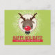 CHRISTMAS GREETING red nose reindeer rudolph green Holiday Postcard