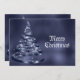 Christmas Greeting Shiny Blue Ribbon Tree Sparkle Holiday Card