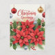 Christmas Greetings, colourful poinsettias with festive ornaments.