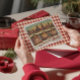 Charming retro style holiday scene with "Merry Christmas from Illinois" Christmas card with festive red plaid background.