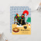 In this Christmas illustration, the Portuguese Rooster is seated at a table as he pens Christmas greetings with old-fashioned charm. His affinity for tradition shines through as he meticulously crafts each card by hand. His pen is funny, it has a snowman on the top. Snow is not abundant in Portugal. A delectable king cake graces the table, complemented by a soothing cup of tea. The old-fashioned chair and lamplight and backdrop of blue and white tiled walls make it look cosy and even nostalgic. This simple illustration captures the essence of a bygone era—where sentiments are carefully penned. This product is ideal to offer to a Portuguese friend, or to a relative, to someone of Portuguese descent, or to someone who appreciates Portuguese traditions. Remove or change the words and their font with Zazzle Design Tool.