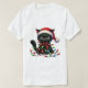 Holiday t-shirt is shown with a cute Christmas grumpy cat in holiday lights print.