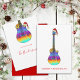 Christmas Psychedelic Semi Acoustic electric Guitar wearing a Festive Santa hat Merry Christmas Greetings card. Any guitarist or musician will tell you that you can never have to many guitars. This fun colourful guitar Christmas greetings card, is ideal for a teenage boy who’s a budding rock star and celebrates the energy and variety of this wonderful musical instrument. The perfect Personalised festive greetings card for guitarists, musicians and music lovers. Psychedelic guitar cool pop art by artist Catherine Sweetman