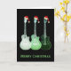 Christmas Green Pop Art Electric Guitars Festive Greetings card. A pop art card for music lovers with a Christmas twist ideal for guitarists especially teenage boys. You can change the greeting using the templates to personalise this festive guitars greetings card. Green pop art drawings of three guitars in translucent ethereal green with funny Santa hats created by artist Catherine Sweetman