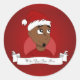 Personalised design with an illustration of happy smiling African American man with Santa Claus' hat; with editable text template, Christmas holidays design with a red background, by Radka Kavalcova