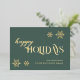 Send season’s greetings with this green foil business holiday card featuring elegant gold snowflakes and modern typography. Perfect for corporate Christmas messages, professional Happy Holidays cards, or company client appreciation, this minimalist design blends festive style with a polished business look. A great choice for modern companies, small businesses, or corporate teams wanting to share thanks and joy. Create your own custom logo holiday card to stand out this season.