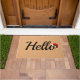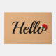 Holiday Hello doormat is shown in a holiday santa hat print.