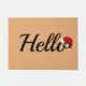 Holiday Hello doormat is shown in a holiday santa hat print.