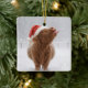 Christmas Highland Cow Catching Snowflakes Ceramic Ornament