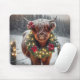 Christmas Highland Cow Wearing a Wreath Mouse Pad