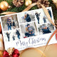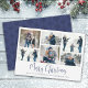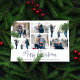 This design features Christmas holiday multi-photo collage 6 six, with snowflake navy blue, simple festive snow winter elegant, family picture 6 photo grid, trendy stylish calligraphy script, whimsical typography text design, Christmas holiday photo greeting cards, simple minimalist minimal layout, blue and white whimsical pattern, basic clean photo layout template