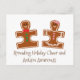Cute gingerbread boy and girl cookies with a puzzle shape. The puzzle piece is the symbol for autism. Spread holiday cheer and awareness this season with these postcards.