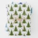 Christmas Holiday Blue Green Trees Pattern Glitter Wrapping Paper Sheet